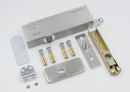 Sanoco standaard taatsdeurscharnier max. 100KG conform EN1154. Uitv. "standaard" h=56mm incl. 40mm RVS vloerplaat en nastelbare messing bovenspeun, PE = VE = 1 Stuks