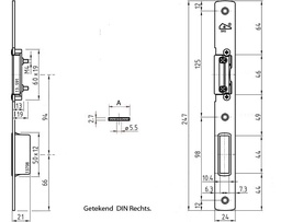 Sluitplaat RVS, niet nastelbaar, U24x5 DIN L/R, v. dag-en nachtschoot incl. eind- en achterkap